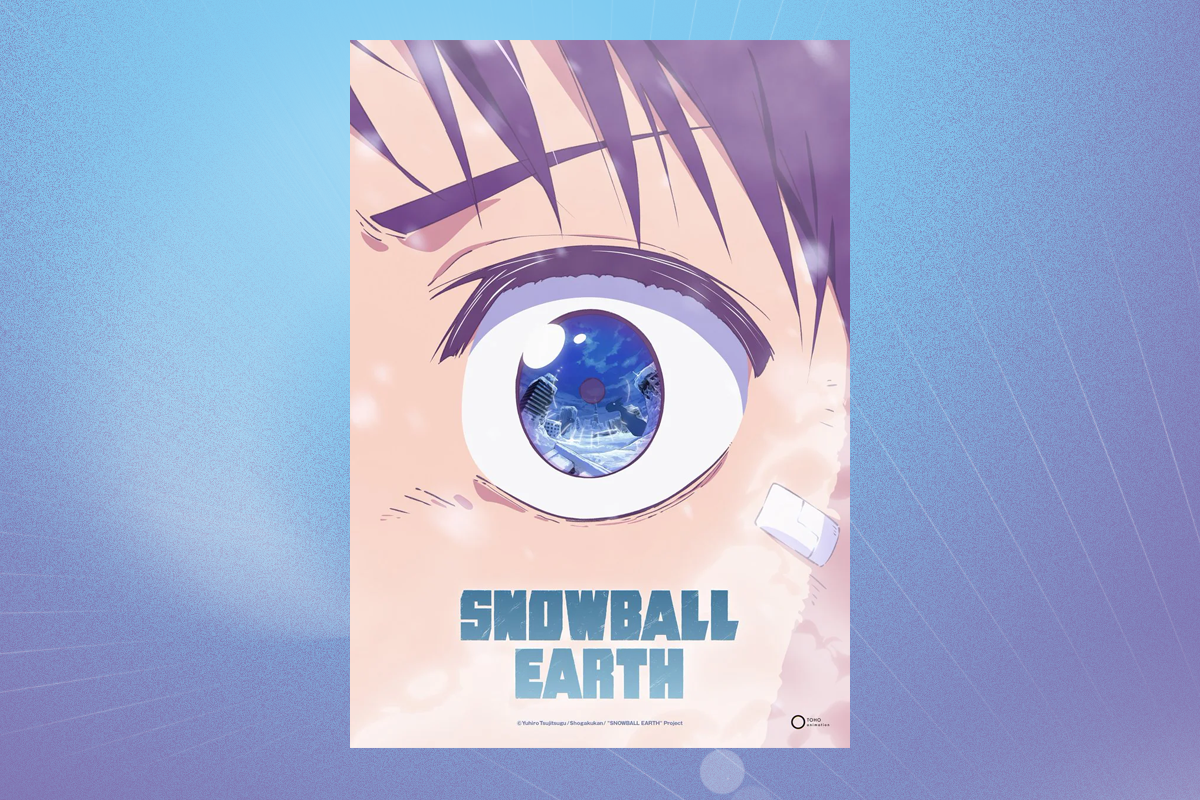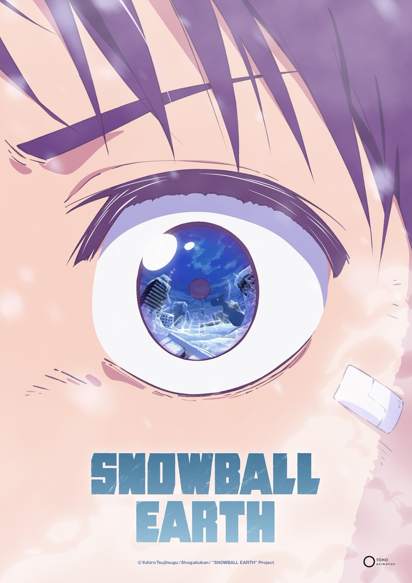 Alongside the announcement, a newly revealed teaser visual for the SNOWBALL EARTH anime has been released. The illustration, drawn by character designer Toshiya Kono, features a close up of protagonist Tetsuo Yabusame’s eye. Reflected within the pupil is a vast land covered in snow and ice, the frozen world of SNOWBALL EARTH. Buildings buried deep beneath the snow and the silhouette of a looming kaiju hint at the story that lies ahead for Tetsuo, setting the tone for the adventure to come.